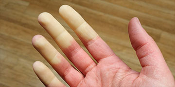 Se caracteriza por una disminución de la circulación sanguínea en los dedos de las manos y de los pies, que produce dolor y cambios de coloración en dichas localizaciones. En ocasiones puede afectar a otras zonas como los labios, la nariz y las orejas.
